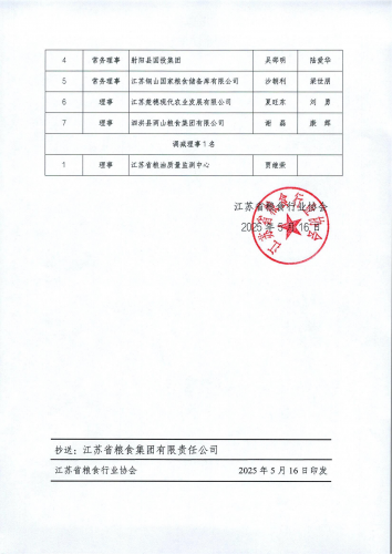 关于江苏省粮食行业协会第五届理事会调整副会长、特邀副会长、常务理事、理事的公告