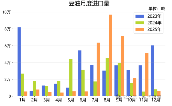 中国12月毛豆油进口量为0.62万吨,环比减少87.91%;同比减少23.61%。其中进口来源地:俄罗斯为0.58万吨(93.46%),其他合计0.04万吨(6.54%)。