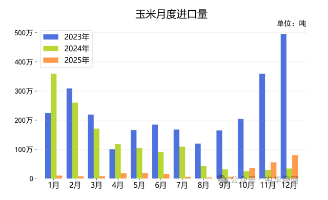 2025年1-12月玉米进口量共计264.77万吨,同比减少80.76%,其中进口来源地:巴西为160.72万吨(60.7%)、俄罗斯为44.4万吨(16.77%)、缅甸为28.87万吨(10.9%),其他合计30.78万吨(11.62%)。