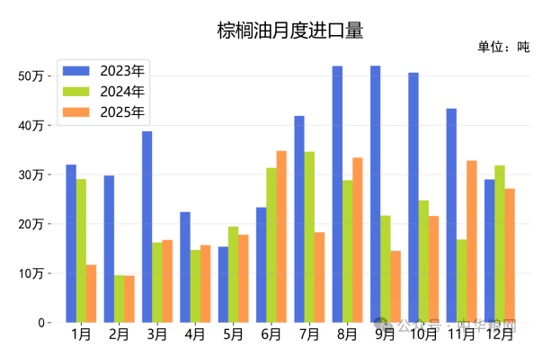 中国12月24度精炼棕榈油进口量为27.13万吨,同比减少4.67万吨,减幅14.7%。其中,印度尼西亚为24.66万吨(90.9%),其他合计2.47万吨(9.1%)。
