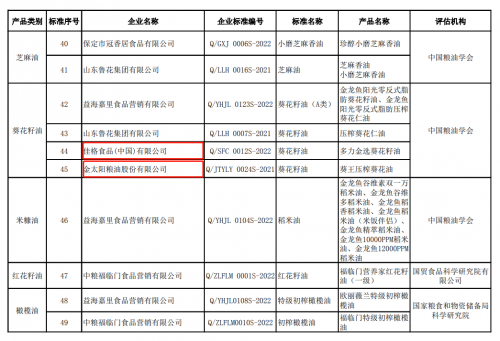 根据中共中央、国务院《国家标准化发展纲要》、《市场监管总局等八部门关于实施企业标准“领跑者”制度的意见》(国市监标准〔2018〕84号)、《市场监管总局关于发布〈2022年度实施企业标准“领跑者”重点领域〉的公告》(2022年第14号)和《国家粮食和物资储备局办公室关于开展2022年粮油产品企业标准“领跑者”活动的通知》(国粮办标〔2022〕154号)有关要求,中国标准化研究院通过公开征集评估方案与专家评审,确定了18家粮油产品企业标准“领跑者”评估机构,评选出45家企业的72项产品标准为2022年粮油产品企业标准“领跑者”建议名单,现予以公示。公示期为2022年9月26日至10月5日。玉米油产品,因相关单位提交的评估方案未通过中国标准化研究院组织的专家评审,因此,今年不再开展相关评估工作。