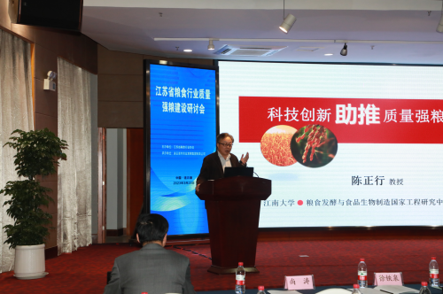会上,省协会副会长单位连云港市农业发展集团董事长邵泽勇同志致辞;会议以质量强粮建设,培育粮食经济发展新优势,推进粮食产业高质量发展为主题召开研讨会,江南大学陈正行教授和八家企业代表交流探讨了以高质量为追求,推动粮食产业经济向质量效益型发展的经验,对引领江苏粮食产业构建经济发展新优势,推进中国式现代化的江苏实践有着十分重大现实意义。