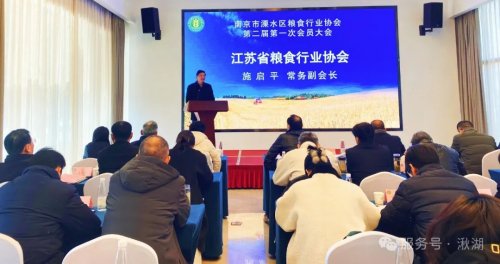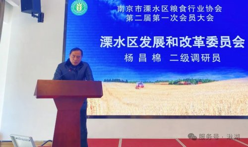溧水区发展和改革委员会二级调研员杨昌棉致辞,祝贺溧水区粮食行业协会会员大会隆重召开,肯定了协会五年来的工作成效,对当选的新一届协会理事会成员表示祝贺。同时也对今后协会的工作给予了期待,并对省市各级领导对溧水粮食行业长期的关心和支持表示感谢,希望全体粮食人继续同心协力继续推动溧水区粮食事业高质量发展。