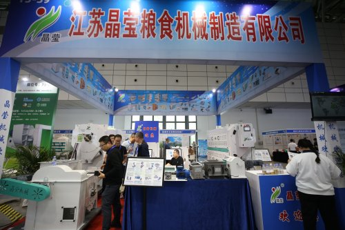 粮油展期间中国粮食行业协会会长栾日成在江苏省粮食行业协会会长陪同下到江苏展团南京晶健米业有限公司等粮油粮机展位莅临指导!