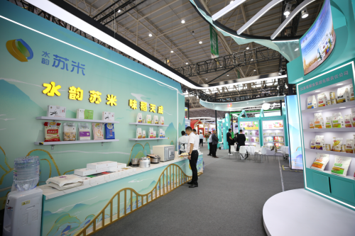 开幕式结束后,国家粮食和物资储备局党组成员、副局长刘小南一行在江苏省发展和改革委员会党组成员,省粮食和物资储备局党组书记、局长肖延川陪同下来到江苏展区参观。刘小南局长在展台前仔细了解“晶润大米”、“低GI米”等苏米产品,对“水韵苏米”的价格、口感、品质等表示了肯定,并对“苏米”发展寄予厚望。肖延川局长说:下一步,我们将按照省委1号文件‘持续推进水韵苏米品牌建设’部署要求,以‘水韵苏米’品牌高质量发展三年行动计划为抓手,继续探索将优质粳稻资源优势转化为产业经济高质量发展的现实路径,加大力度实施品种培优、品质管理、品牌推广、营销拓展、融合发展五大提升行动,汇聚政策、资金、人才等资源,通过全产业链品质管理,搭建线上线下销售渠道,将品牌和文化链接,持续讲好江苏粮油故事,让‘放心、好吃、营养’苏米形象深入人心,产品畅销大江南北,为更高层次保障粮食安全作出贡献。”江苏省连云港工贸高等职业技术学校代表江苏大专院校参展,省粮食和物资储备局党组书记、局长肖延川,省粮食和物资储备局二级巡视员孙燕到展位参观。