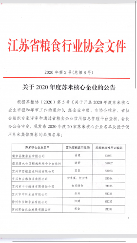 关于2020年度苏米核心企业的公示