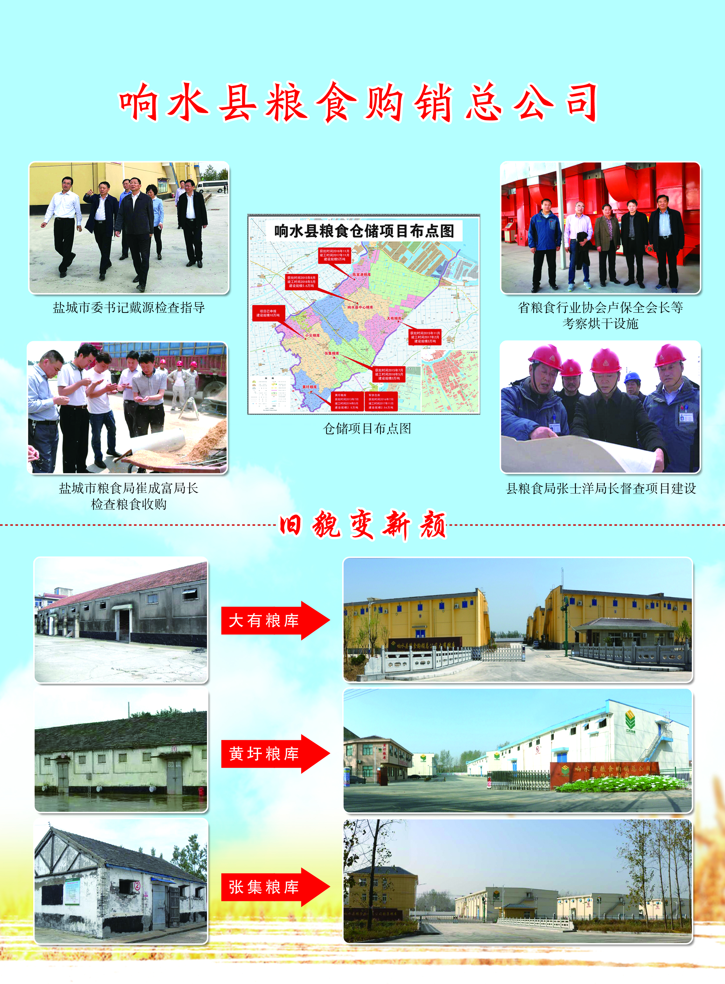 我本人切身感受,座座粮库焕然一新,崛起成为新农村亮点,响水粮食行业真是发生了翻天覆地变化,让人倍感欢欣鼓舞。2017年购销存量突破历史极值,年收购总量首次超24.8万吨,占年初计划248%;销售6.1万吨,占年初计划122%;国有粮食企业经营总量40万吨,占年初计划250%,年末库存总量40万吨。2017年获得“全省粮食安全工作先进集体”、“全市粮食购销工作先进集体”、盐城市总工会“模范职工之家”等荣誉称号,响水粮食系统首次进入市粮食局考核前三名。