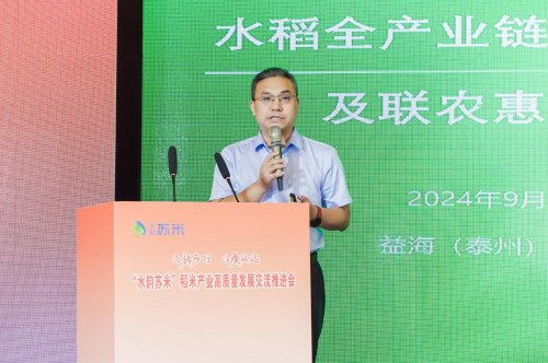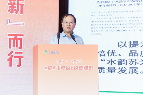 江苏省“水韵苏米”产业研究院院长王才林以《构建“三品一标”技术体系 助力苏米产业高质量发展》为主题,从“水韵苏米”专用水稻新品种研发、“三品一标”技术体系建设等方面进行交流。