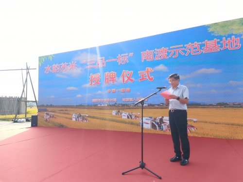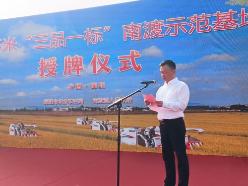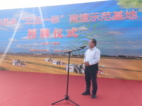 活动现场,李德为市岁丰农业科技有限公司负责人王林松授牌——“水韵苏米”三品一标示范基地。据了解,自2018年江苏省启动“水韵苏米”省域公用品牌建设以来,江苏制定了全国首个省域全产业链性质“苏米”团体标准,涵盖稻谷生产技术规程、大米加工技术规程、质量追溯基础信息规范等5个方面,逐步建成、培育了一大批“好稻种+好生态”示范基地。“三品一标”(品种培优品质提升品牌打造标准化生产)原指无公害农产品、绿色食品、有机农产品和农产品地理标志,它是政府主导的安全优质农产品公共品牌,是当前和今后一个时期农产品生产消费的主导产品,也是传统农业向现代农业转变的重要标志。