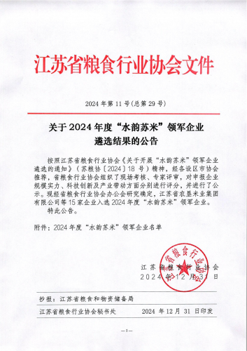 关于2024年度“水韵苏米”领军企业遴选结果的公告